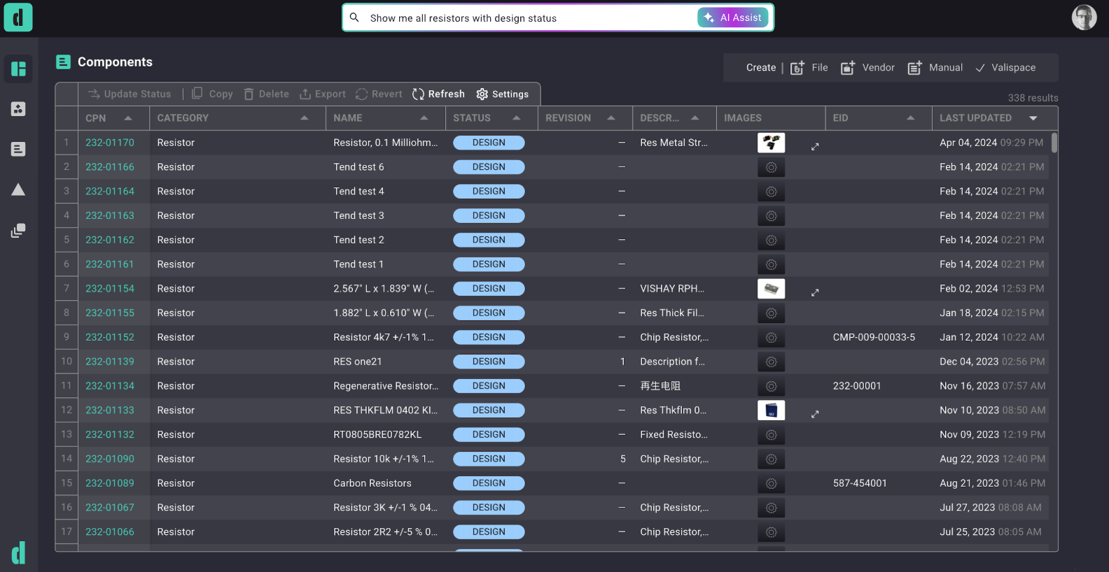 For example, say an engineer wants to search their BOMs for CMP resistors that are still in the design stage. They might search their PLM for “type:CMP cat:resistors status:design,” and the relevant parts would come up. This is easy enough for an engineer who’s knowledgeable about the product, but not as easy for another team member who doesn’t know the right keywords. Gen AI with natural language processing will hopefully soon make it possible for this team member to search their PLM using plain language, such as, “show me all the resistors we’re currently designing.”