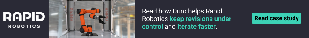 Rapid Robotics uses Duro PLM to centralize a repository of product designs and revisions. This allows them to customize robots to meet specific customer needs swiftly, ensuring accuracy and consistency across manufacturing settings. This streamlined approach speeds up the adaptation process and reinforces Rapid Robotics’ capability to innovate rapidly in response to evolving market demands.